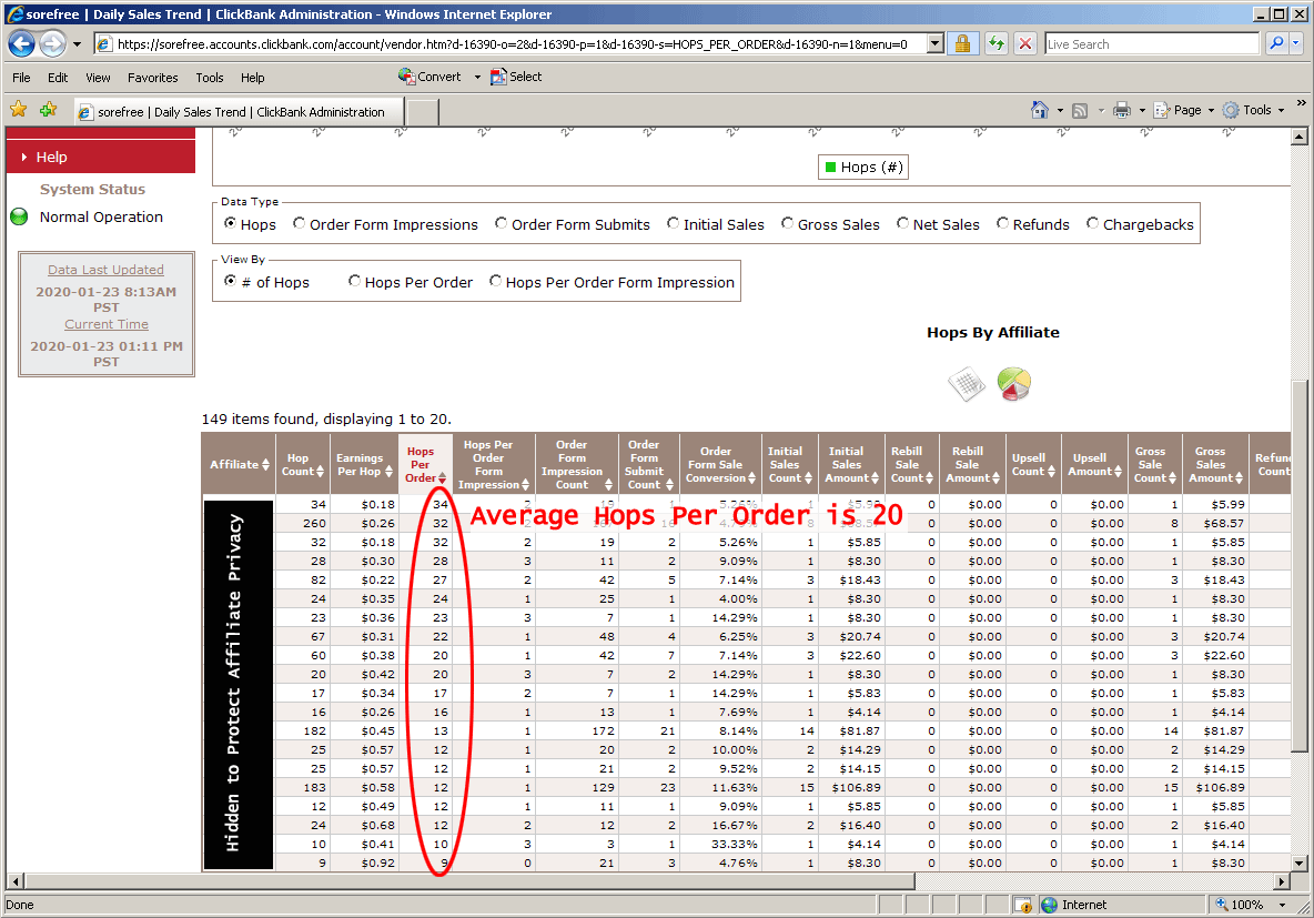 Earn 75% of 37 Per Sale + $67 Backend Sale Averaging 5% - 8% Conversions (Proof Below) Below you can find a screenshot of our ClickBank recent statistics showing our Average "Hops Per Order" which is 1: 20 - which means that the average Affiliate's conversion is of 1 Sale Every 20 hops! (Click On The Below Screenshot for Full Size) Note: Some data have been blurred to protect the privacy of the entities in question. Free Affiliate Coaching & Guide Shows You Everything You Need To Make Sales...